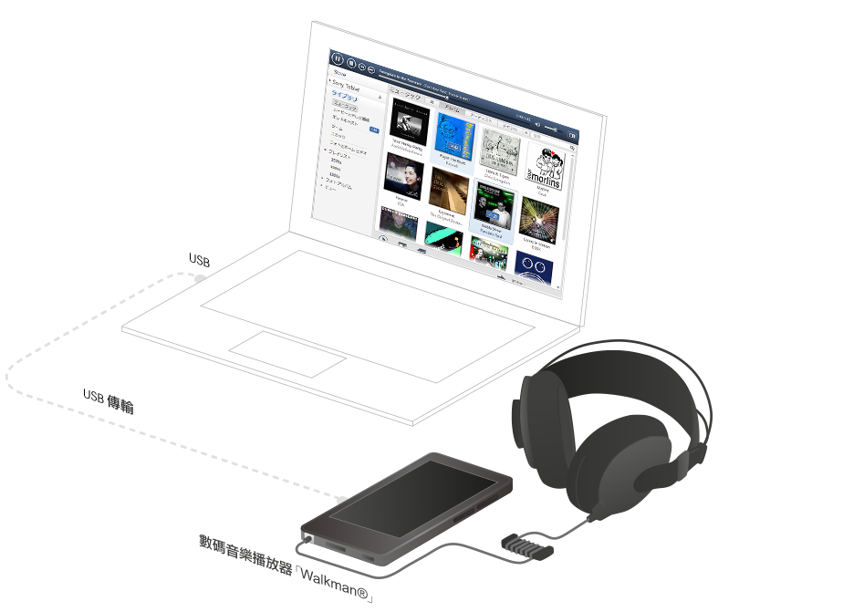 ○* DSD音效檔轉換成AAC或MP3,然後傳輸至「Walkman®」。